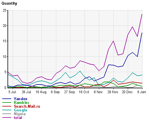 Можно списать на инерционность поисковых систем. Но если такая тенденция сохранится в течение ближайших 20 месяцев, то сайт станет уже крупным информационным ресурсом с по-настоящему большой аудиторией.
