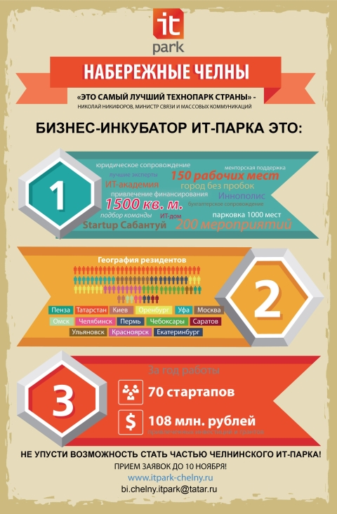 Стартаперы всех регионов нашей необъятной страны! Торопитесь подать заявку на отбор в Бизнес-инкубатор одного из самых прорывных технопарков! У вас есть крутая идея? Не теряйте время - оно бесценно, действуйте! Необходимо отправить презентацию вашего проекта с контактами через наш сайт, заявки принимаются только до 10 ноября. Отбор состоится 16-17 ноября.
