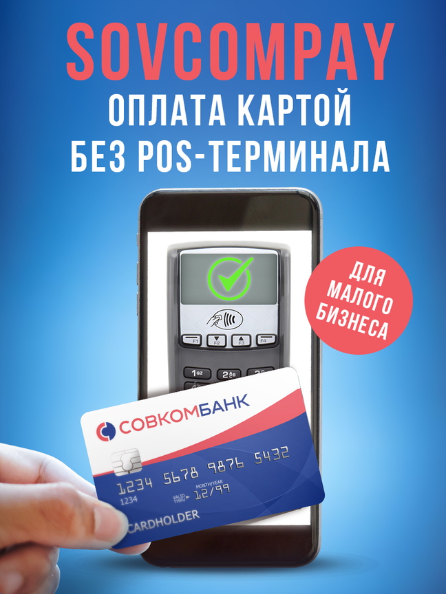 О чем речь? SovcomPay* – это новый функционал в мобильном приложении «ЧатБанк Лайт» Совкомбанка, предназначенный специально для ИП и юр.лиц с разовыми заказами или небольшим потоком покупателей. Больше никаких терминалов Все, что вам понадобится для работы, – это любой смартфон или планшет с установленным приложением «ЧатБанк Лайт», расчетный счет в Совкомбанке и доступ к интернету. Открыть расчетный счет можно онлайн и всего за пару минут, отправив свой номер телефона и дистанционно подписав документы. Как это работает? Для проведения платежа продавцу необходимо выбрать услугу SovcomPay в приложении, ввести номер карты покупателя или номер его мобильного, а также имейл покупателя для получения чека. Вся операция займет 3-5 минут. Деньги от клиента зачисляются на следующий рабочий день, а по картам Совкомбанка – моментально. Приложение работает на IOS и Android. Информация о всех транзакциях – суммы и их статус – выводится в интерфейсе. Как это работает у клиента? Если клиент использует для оплаты карту Совкомбанка, то ему на телефон придет подтверждающий код, который нужно сообщить продавцу, если карту другого банка – смс со ссылкой, где он самостоятельно вводит данные своей карты. Подключение кассиров Вы можете подключить к услуге неограниченное количество продавцов, раздав им права кассира в приложении. Очевидная экономия Подключение к услуге SovcomPay стоит всего 1000 руб. Комиссия по операциям через SovcomPay составляет 1% при оплате картой Совкомбанка и 2,3% – при оплате картами сторонних банков. Специальный эквайринг Совкомбанка поможет идти в ногу со временем и перестать терять клиентов, которые не хотят или не могут платить наличными! *«Sovcompay» (совкомплатеж (англ.)) – сервис системы ДБО «Чат-Банк» для Клиентов Банка (юр. лиц и ИП, имеющих открытый расчетный счет в Банке, подключенных к системе ДБО «Чат-Банк», услуге Интернет-эквайринга. Подключение к сервису стоит 1000 рублей, проведение расчетов по картам выданных Банком 1%, выданных другими банками 2,3%, возврата платежа, принятого с использованием карт, выданных Банком бесплатно. Предложение действительно на дату выхода рекламы. ПАО «Совкомбанк». Ген.лицензия ЦБРФ №963