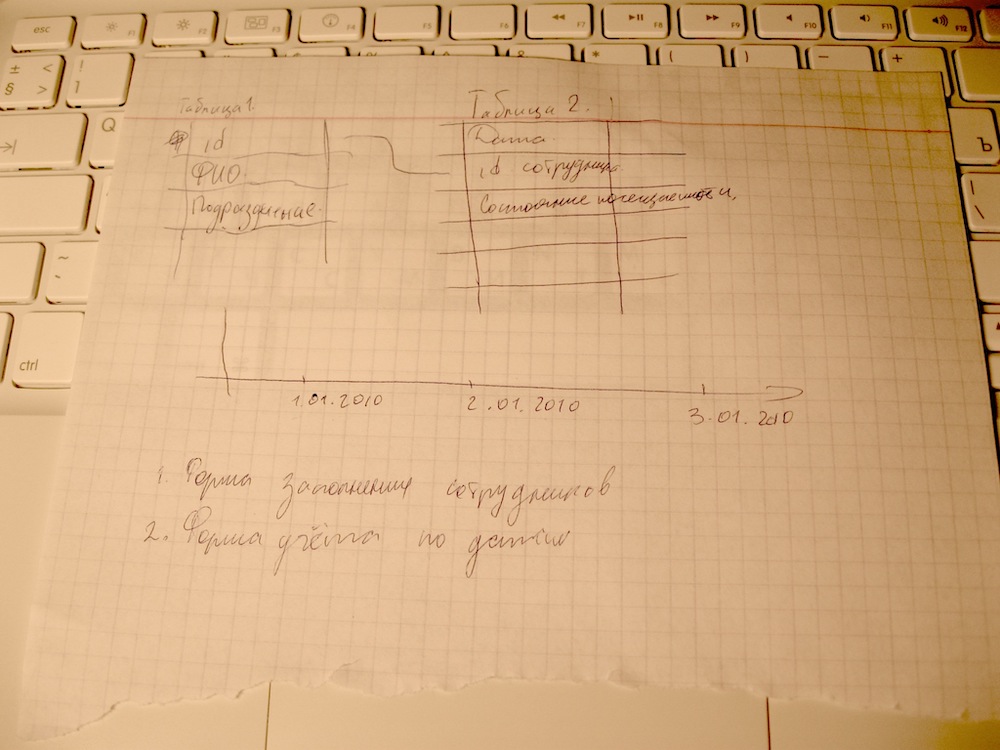 Текущий мой проект. Простейший учёт кадров. Пара штрихов и задача как на ладони.