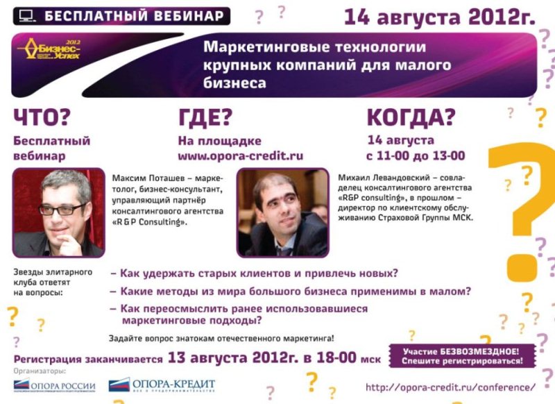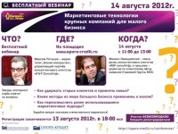 Кстати, 14 августа будет бесплатный вебинар по маркетингу для малого бизнеса. Нажми, чтобы увеличить анонс