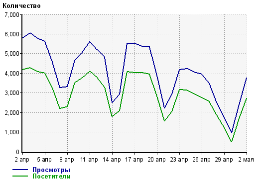 Апрель для сайта выдался тяжелым. Сначала вирусная атака, затем последовал переезд на новый хостинг. А точнее переезд осуществлялся из виртуального хостинга на виртуальный сервер. Прикол в том, что новых ресурсов не хватило даже для того, чтобы держать снижающуюся из-за праздников нагрузку.