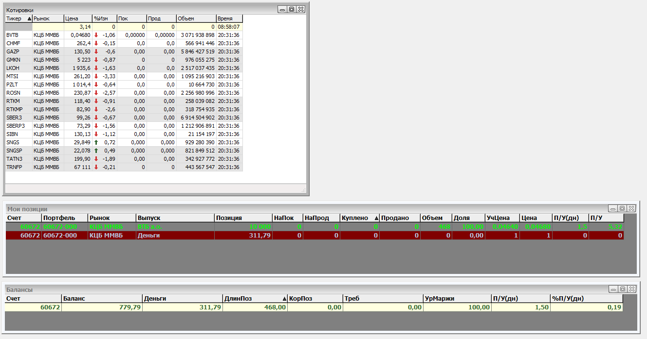 Комиссия при покупке составила совсем небольшую величину, ей можно пренебречь. Так как цена акций выросла, то теперь сумма на брокерском счету уже больше, чем то, что мы вложили туда.