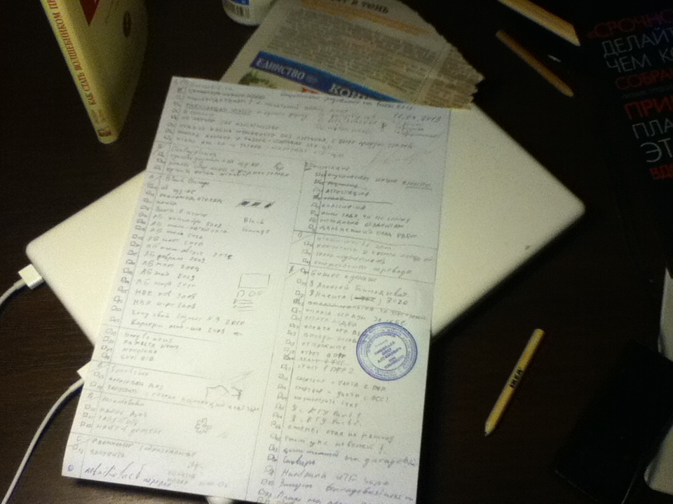 Так как у меня несколько активных проектов, я стал практиковать такие вот структурированные списки дел. Форма этих списков может быть абсолютно разной. У меня есть