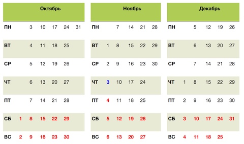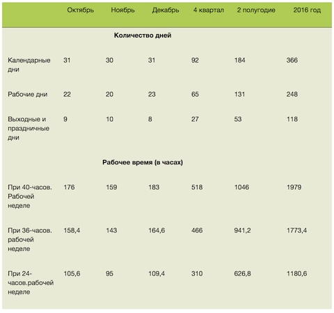 Производственный календарь и норма рабочего времени на 4 квартал 2016:
