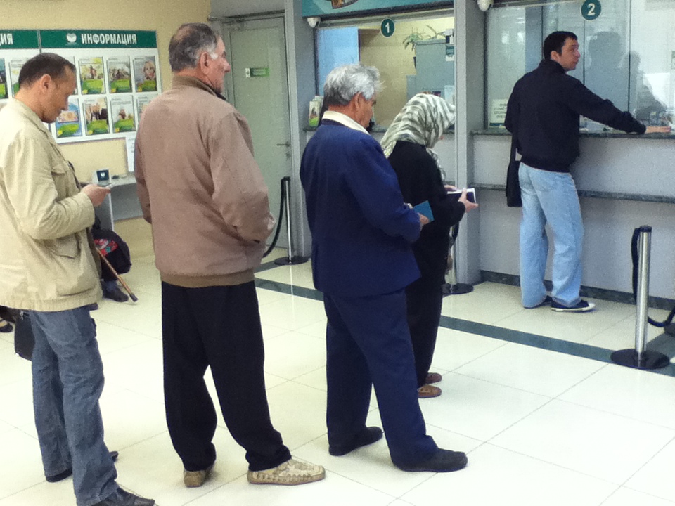 Очередь в банке, чтобы получить безумные проценты по кредиту.