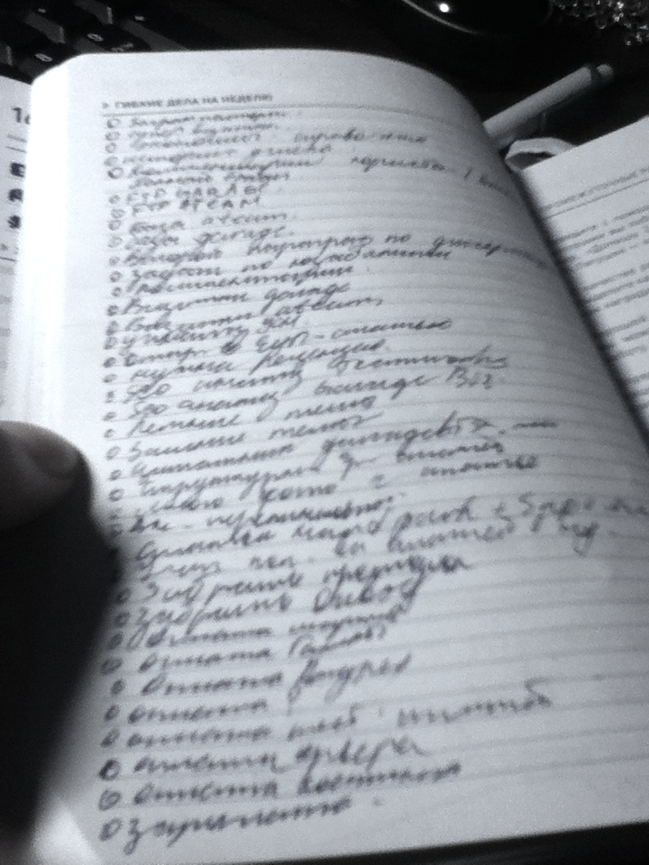 Список дел – действительно работоспособный инструмент, который работает, когда вы – работаете с ним. К статье прикреплён пример гибкого списка на неделю. Есть также списки дел, привязанные к конкретному дню или контексту. Например, налоговый календарь – привязан ко всему году. А сходить забрать выписку ЕГРИП из налоговой привязано к конкретному дню.