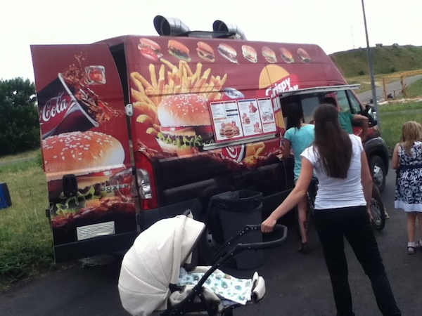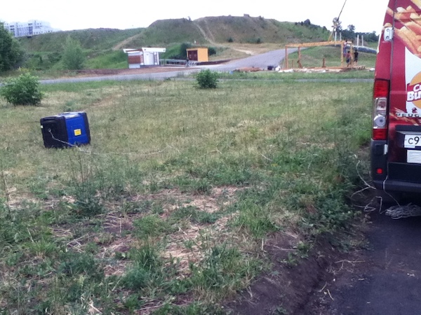 Электроэнергия берется с помощью дизельного (?) генератора, который расположился неподалеку. Особо хочется отметить приятный внешний дизайн фургона. Это безусловно привлекает покупателей.